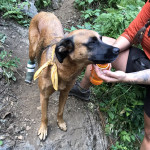 Given Emmett’s size, the difficulty of a pack-out, and his good mobility on 3 limbs, the team decided Emmett could likely return to the trailhead under his own power with harness assistance, if necessary.