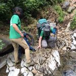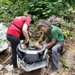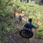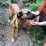 Emmett was able to walk all the way down the trail, being carried by his owner short distances across some of the more difficult areas and small waterways. He alternated between non-weight bearing and light weight bearing on his injured leg.