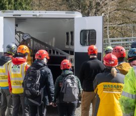 IFO, held March 22, 2026, is the class that prepares our members to safely respond in the field and handle animals during rescues. This past weekend, WASART volunteers trained in responder safety, small and large animal handling, rope handling basics, rescue litter setup and carrying, and working with the tripod.