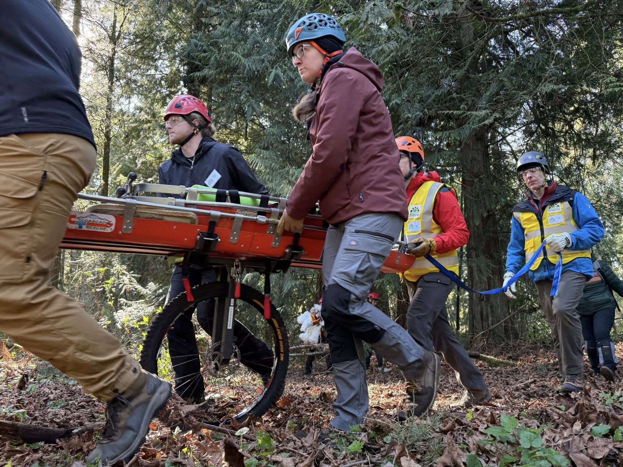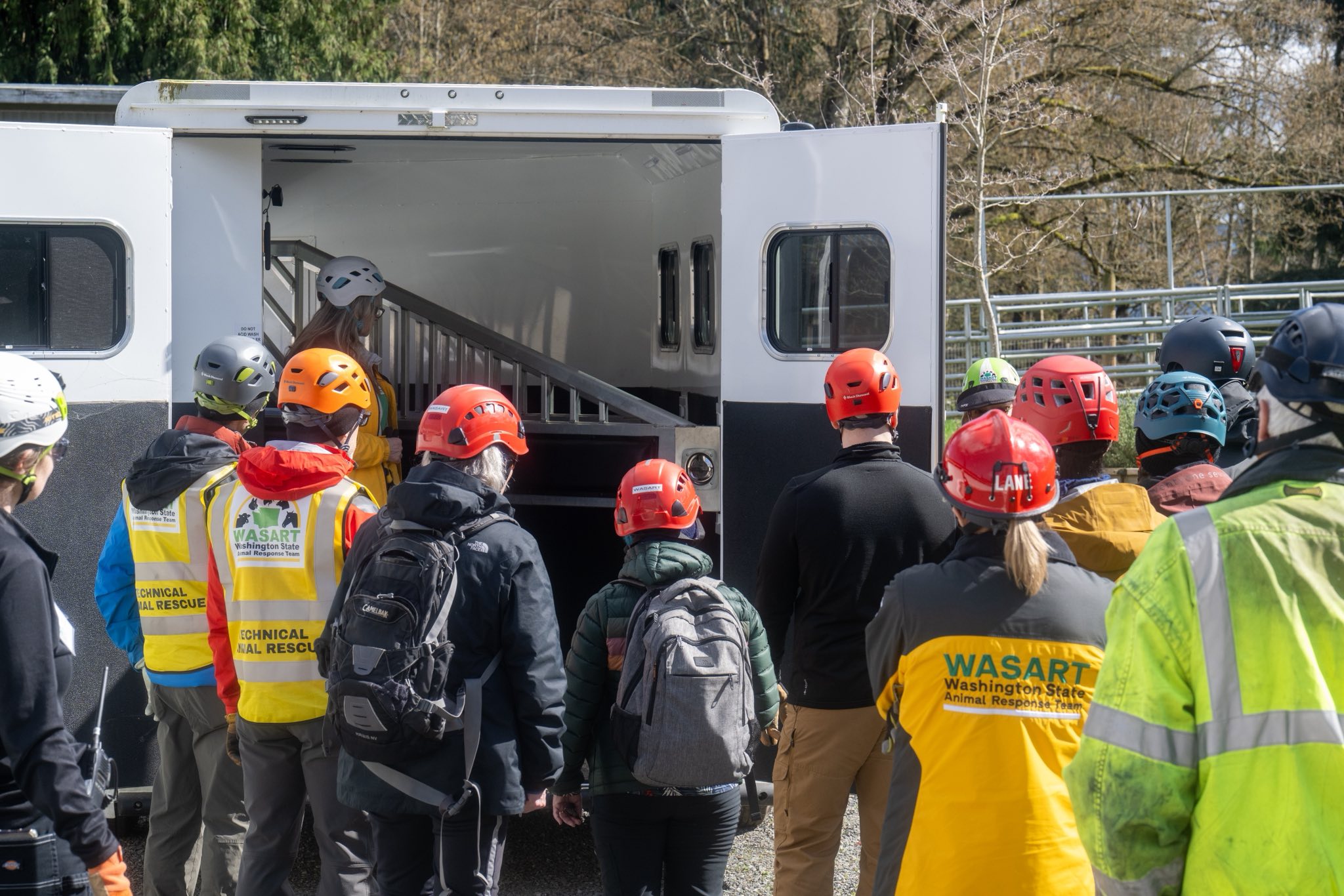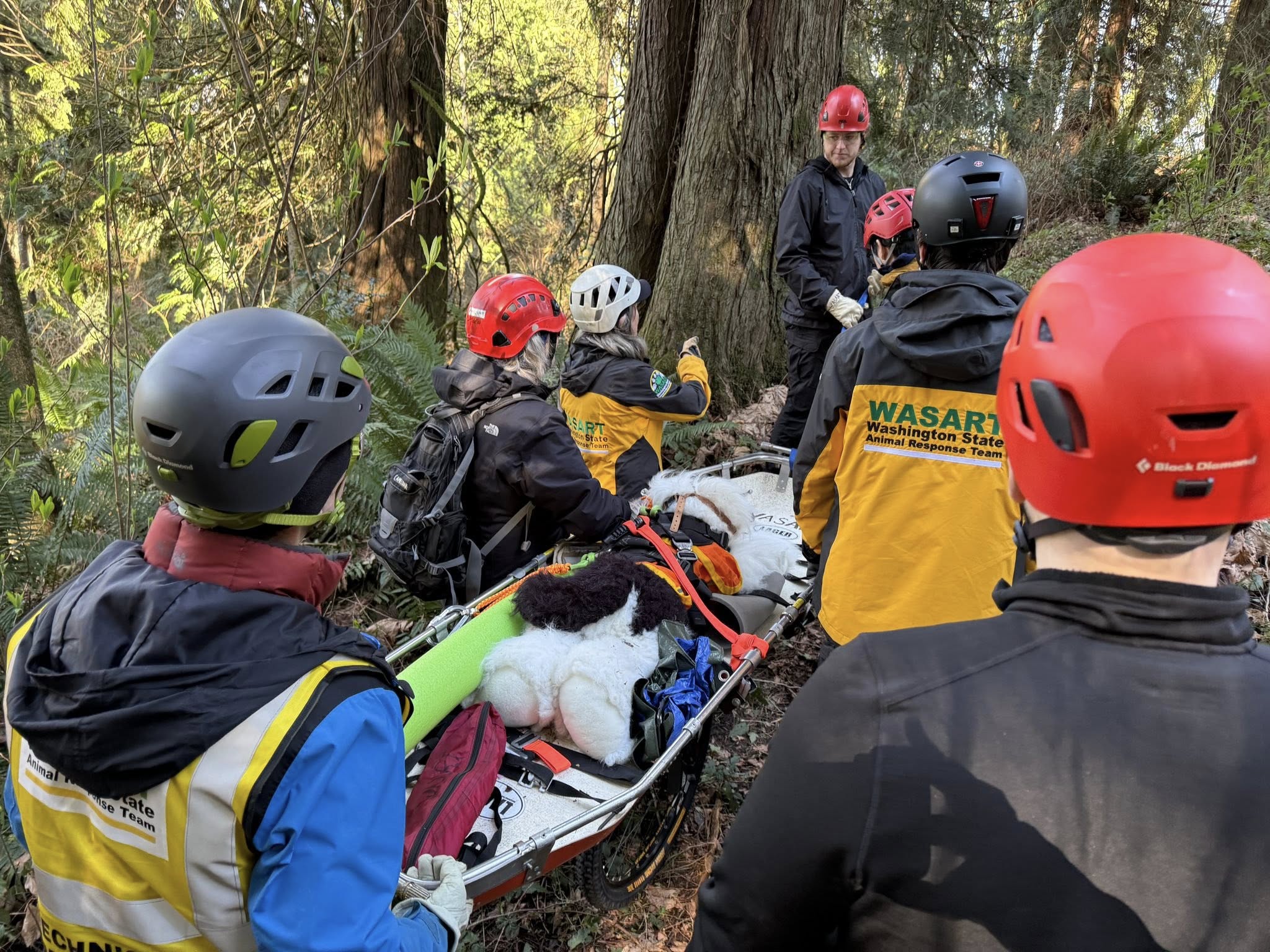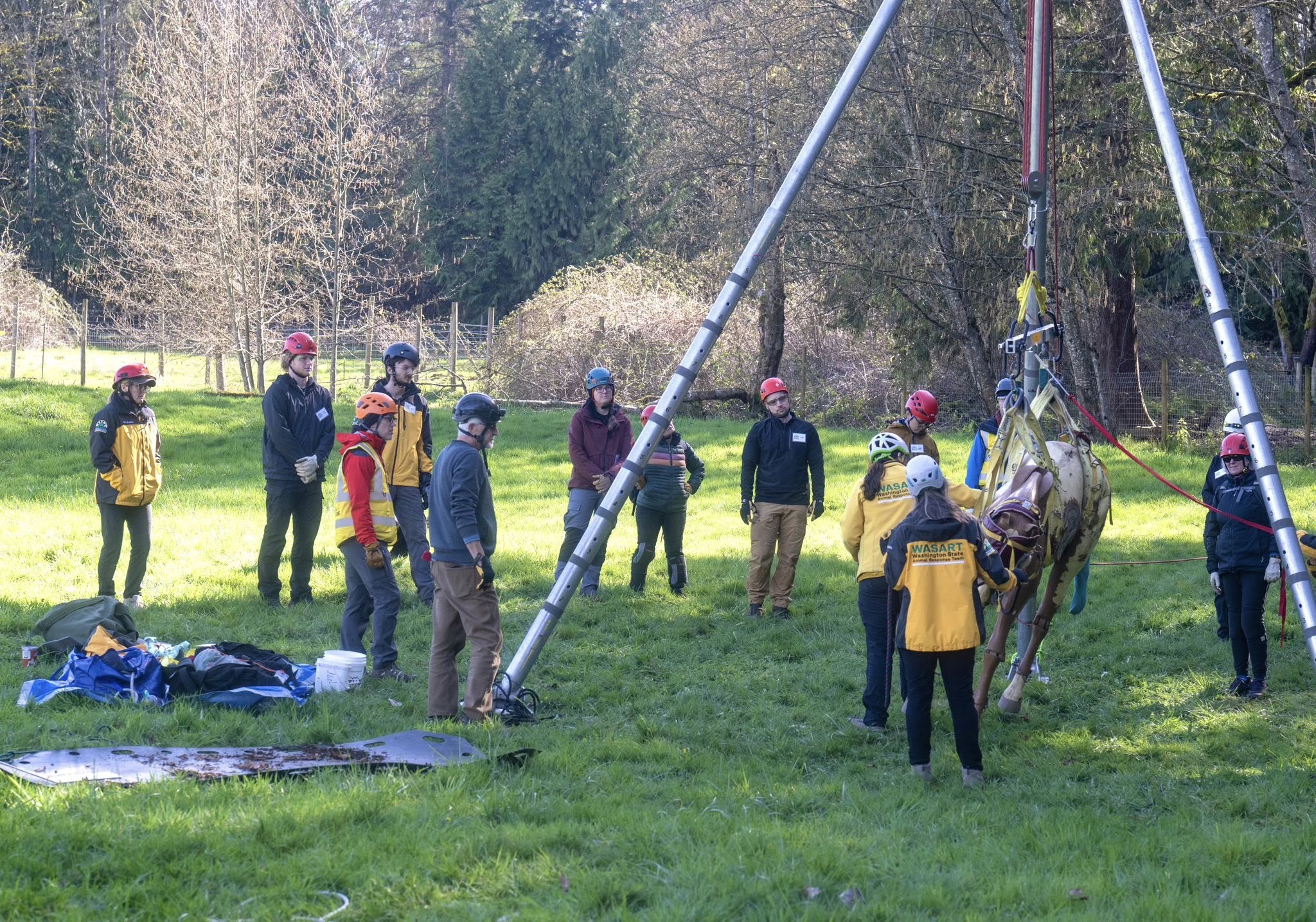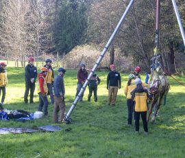IFO, held March 22, 2026, is the class that prepares our members to safely respond in the field and handle animals during rescues. This past weekend, WASART volunteers trained in responder safety, small and large animal handling, rope handling basics, rescue litter setup and carrying, and working with the tripod.