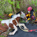 We got a call from the owner of Buster, a horse we’d helped a three years ago out in Orting. Before we’d met him, he’d had a broken pelvis and the convalescing had left him without enough muscle in his hind end to stand back up after laying down. We had gone out for a standard lift with a tripod and successfully raised him