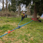 While part of the team had been working with Buster, another part of the team was setting up rigging above. We considered setting up the tripod as point to redirect the system off of, but ended up going with a very sturdy fir tree. This tree was the same we’d rigged off of the last time we were out and it served us well again.