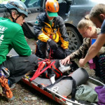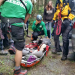 Once everything was set up and rest of the WASART volunteers were on site, the team sent down responder Michael C. with the litter (yellow jacket, orange equipment in the photos) to retrieve Chloe.