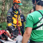 Michael arrived at the dog’s location, a spot that required him to work closely with Chloe. Chloe sustained injuries during the fall but was alert and bright-eyed. We’d been alerted about injuries by a bystander who had gone down to her through an indirect route and come back up.