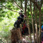We had two attendants get ready. The attendant is the person on the rope system who goes over the edge to reclaim the subject, whether it’s human or animal. One attendant was a WASART responder and the other was a SnoCo SAR member.