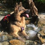 At each water feature, we let Kodin drink as much as he wanted and lay in the cold water. It was a hot day, so we poured water over him both as he lay in the creekbeds and whenever we took a little break to let him (and us) rest.
