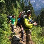 The Gothic Basin Trail starts easy enough, then inclines to something more challenging. After that, it gets steeper, then steeper until you think it’s as steep as it can get, then it gets both steeper and more difficult by having small rock faces to scramble up. We knew we’d also have to be hauling equipment up, so we’d be loaded down with extra weight as well.