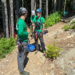 The situation required technical rigging to lower an attendant to secure Layla and raise them both back to the top of the cliff safely. A twin tension rope system was set up.  We lowered an attendant over the top of the cliff and down to Layla’s small ledge. After Layla was secured, the rope system was changed from a lowering system to a pulley system to haul them both back up to the top of the cliff.