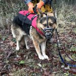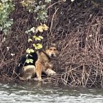 On the afternoon of December 10th, we received a call about a shepherd dog that was stuck across the Wallace River in Sultan, WA. The dog was stranded in an area of the river with a high embankment of dense brush as well as approximately 40 feet of thick blackberry bushes behind the location. He was unable to swim back across the river or to climb out of his position to dry land.