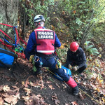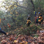 Once the equipment arrived on site, responders ferried up ropes, harnesses, pulleys, and all the other hardware we need to accomplish a rescue.