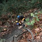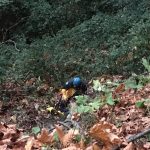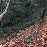 We arrived on the scene of a dog over a cliff near the tip of Discovery Park in Seattle, King County, and walked up the very short trail where Nash, a one year old Lab-Mastiff cross was down a cliff of about 25 feet. He ran along a path at the bottom of the drop-off and barked occasionally so we can definitely say he was conscious and alert. He appeared unharmed, although unhappy about being separated from his people, who waited on the trail above.