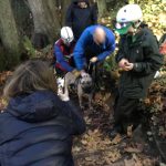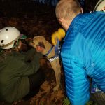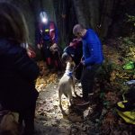 The lift went well and soon Dr. Dahl and Nash scrabbled over the crumbling edge of the drop-off just as it was getting dark. Nash, tired from his ordeal wanted to lay down immediately but saw his people on the trail and made his way over to them as soon as he was released from the harness and attached to a leash.