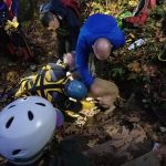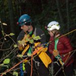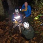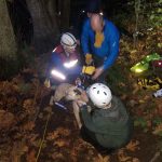 Dr. Dahl rappelled safely to Nash, who wasn’t immediately sure about his new visitor. Dr. Dahl built a rapport with him pretty quickly and rigged an emergency lift harness out of the webbing he had with him. While that was going on, the team above was readying the rope setup from a lower system to a lift.