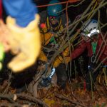 Above, a team works to manage the ropes and the situation in general. For this we had five or six other people taking care of ropes and safety and yet more waiting to assist pulling Dr. Dahl up and Nash up.