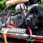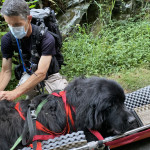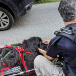 Fortunately for all of us, Sam, a four-year-old 130 lb. Newfoundland wasn’t stranded too far up the Dirty Harry’s Balcony Trail. We’d gotten a call from Sam’s owner and headed out after getting permission from King County to do so. Our call coordinator also called our friends in King County Explorer Search and Rescue (ESAR) to see if they might be available and willing to assist. July is a busy time of year—definitely the busiest for us and we know ESAR was busy as well. Just the night before they’d assisted us on another callout for a dog, also stuck up a trail.
