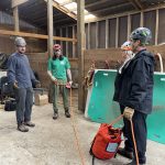 We assembled the tripod a short distance outside the barn and set up our haul lines and redirects. Once the equipment was set and the team was ready, the veterinarian sedated Summer for the move and raise.