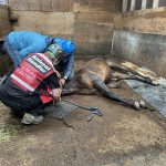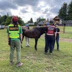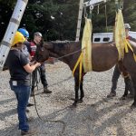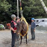 On June 13th we received a call for assistance with a 30-year-old female Mustang horse named Summer. She laid down in her stall during the night and was unable to get up on her own. Her owner stated she had arthritis in her hind end but was an otherwise healthy horse. A veterinarian was on site to evaluate and tend to Summer. While it is common for horses to lay down, being down for extended periods can be dangerous for them.