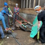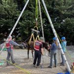 The technical rescue team arrived on scene with our equipment truck. We evaluated the barn environment and made a plan for the horse raise.