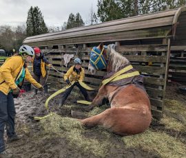 Thank you to Theo’s owner for trusting us to help, and to Dr. Lynch and her assistant Gabbi from Tacoma Equine Hospital for their invaluable assistance with Theo’s medical care during this deployment. These types of rescues are always a team effort.